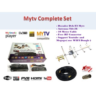 Full Set Mytv Combo Dvb T2 S2 Hd Digital Terrestrial And Satelite Decoder Antenna Cable Shopee Malaysia