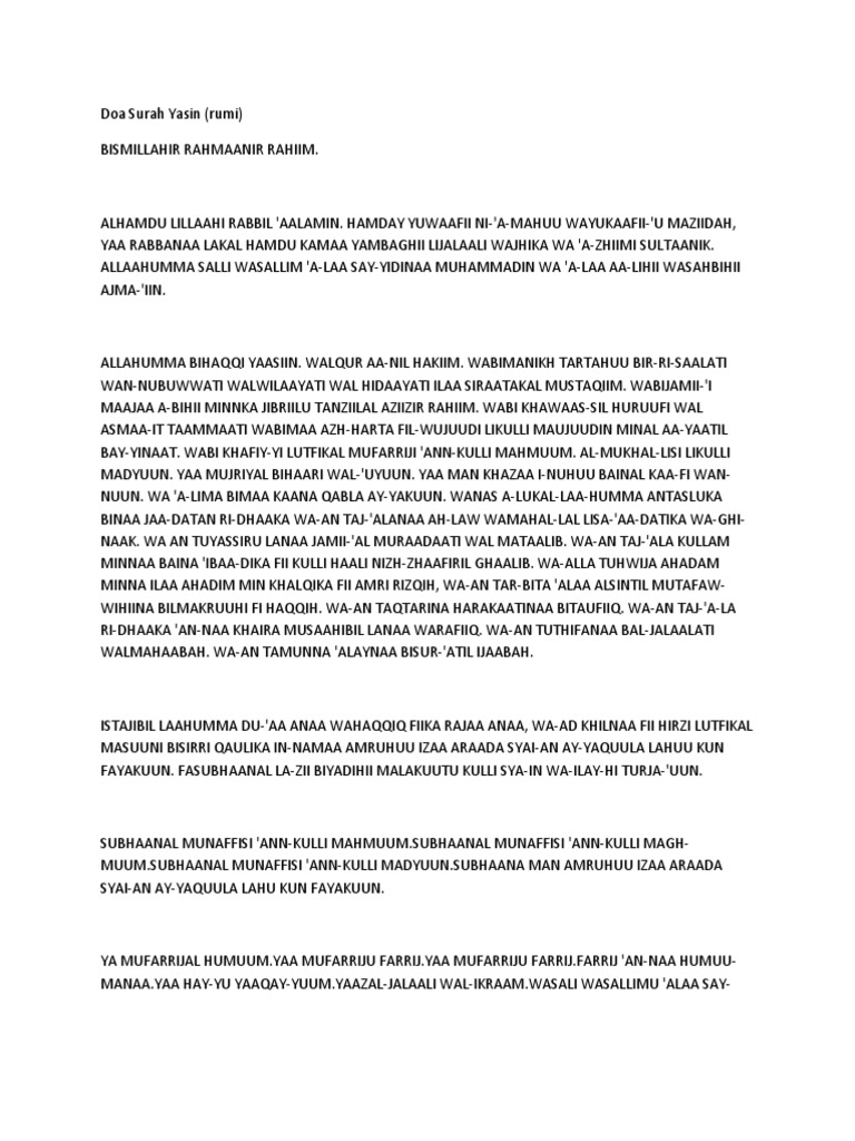Full Doa Surah Yasin Dalam Rumi
