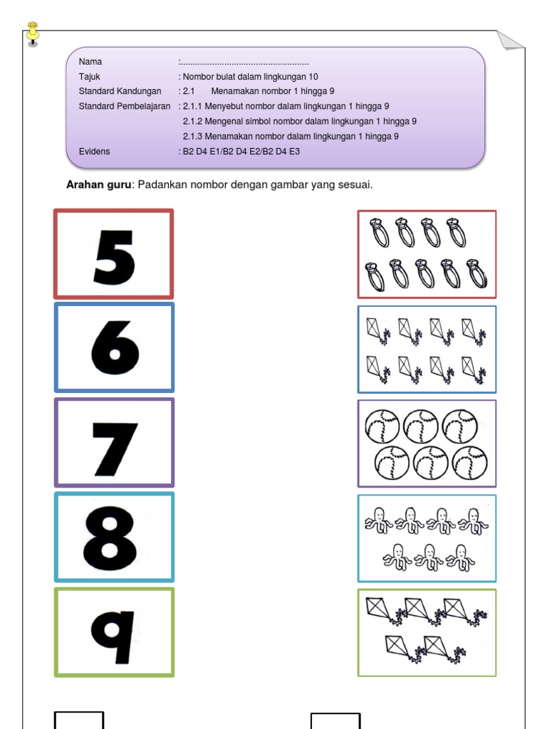 Arahan Guru Padankan Nombor Dengan Gambar Yang Sesuai