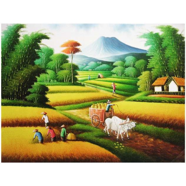 Diskon Repro Gambar Lukisan Panen Sawah Padi Sapi Painting Beautiful Lukisan Abstrak Shopee Indonesia