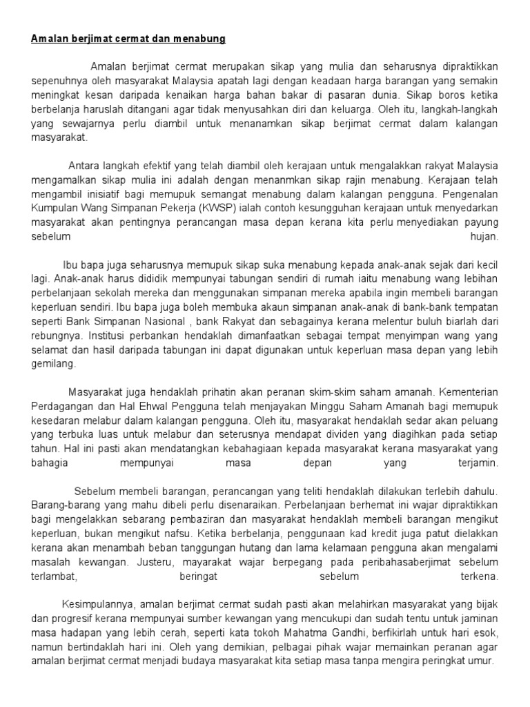 Perkara pertama yang perlu dilakukan oleh ibu bapa bagi menerapkan amalan berjimat cermat dalam diri anak anak adalah dengan menjadikan amalan ini sebagai budaya keluarga hal ini kerana suasana keluarga merupakan cara yang paling cepat dan efektif bagi membentuk keperibadian anak anak. Oleh itu pengguna perlu bijak dalam menguruskan kewangan masing masing supaya tidak timbul masalah kewangan. Cara cara berjimat cermat karangan upsr. Cara cara memupuk amalan berjimat cermat berjimat cermat merupakan amalan yang baik dan perlu dipertingkatkan dari semasa ke semasa.