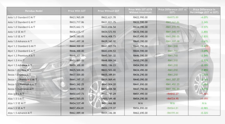 Senarai Harga Kereta Selepas Sst Dilaksanakan 1 September 2018