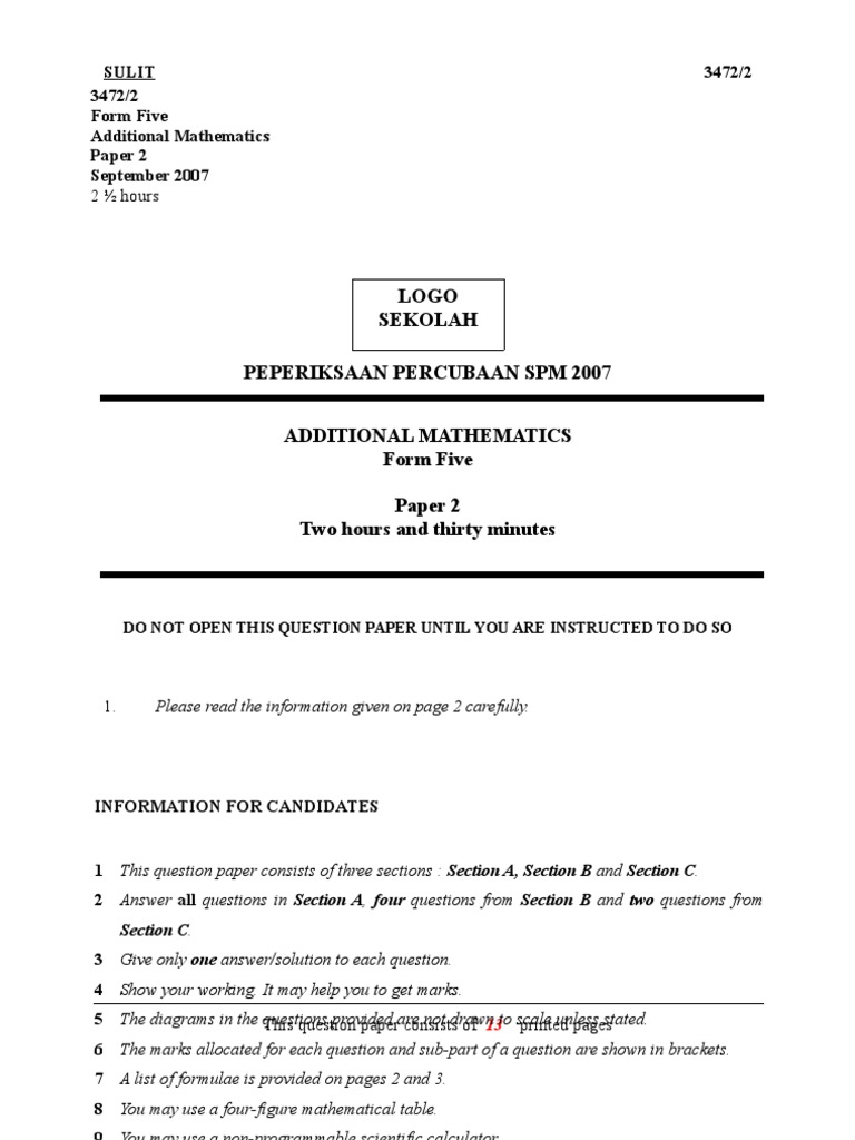 Spm Add Maths Pass Year Question Nl2po1prr208