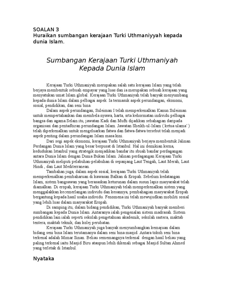 Sumbangan Kerajaan Turki Uthmaniyah Dalam Pembinaan Tamadun By Nurul Balqis