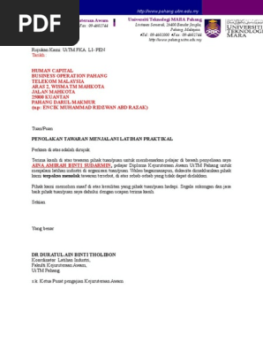 Surat penolakan latihan industri uitm. Keluarkan surat pengesahan penerimaan tawaran dan borang lapor diri untuk dibawa oleh pelajar ke organisasi di mana ia akan menjalani latihan industri. Contoh surat permohonan latihan industri praktikal panduan buat para pelajar yang ingin membuat permohonan latihan industri atau praktikal. Diharap penolakan ini tidak akan menjejaskan permohonan saya sekiranya ingin bekerjasama dengan pihak tuan puan di lain masa. Latihan industri fuu surat pengesahan jawapan daripada they are so many great picture list that may become your motivation and informational purpose of contoh surat pengesahan pelajar universiti design ideas on your own collections.