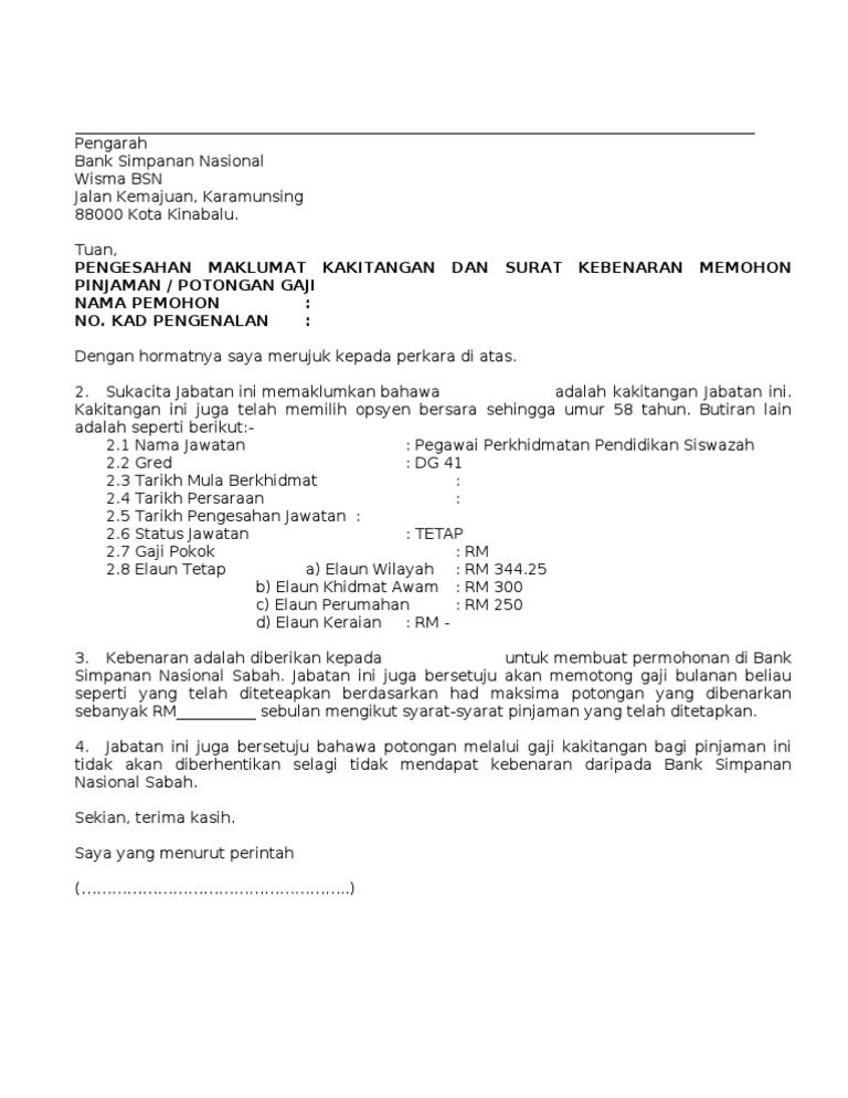 Contoh Pinjaman Bsn